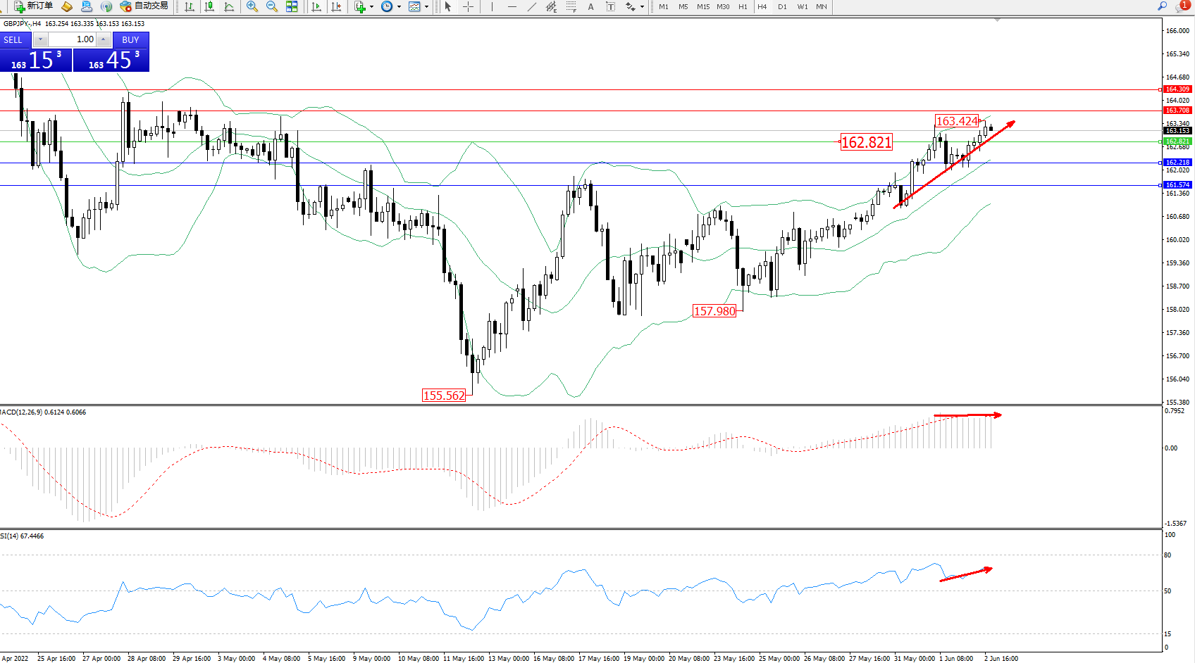 英镑兑日圆维持163.153附近震荡,调查显示,英国5月制造业活动扩张速度为2021年1月以来最慢,投资者担心增长前景恶化。