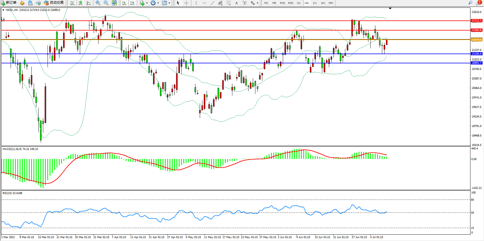 恒指HK50 4小时图