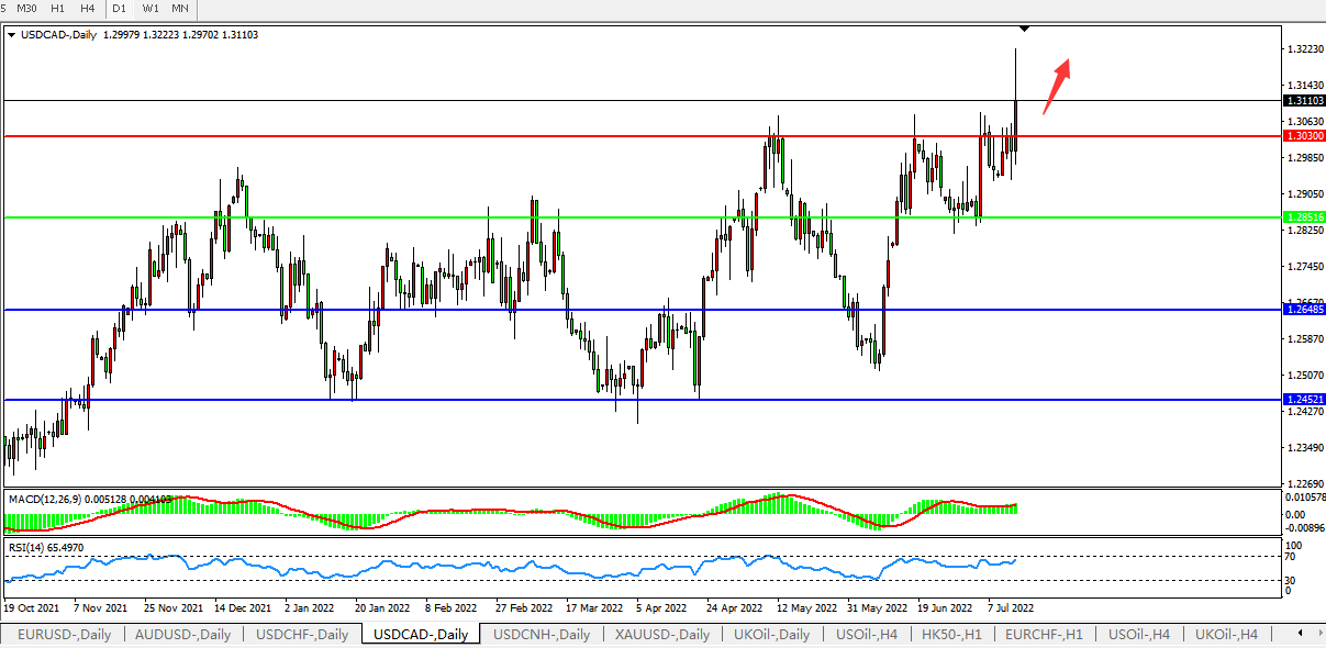 USDCAD:1.30上方继续买入 USDCAD  CADJPY