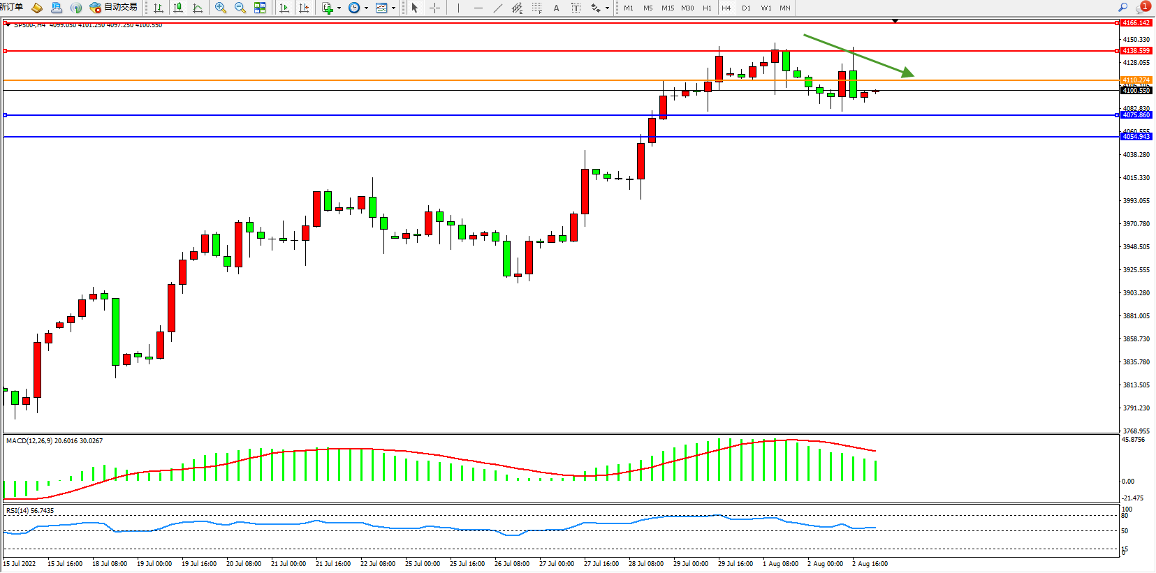 标普SP500——4小时K线图显示: