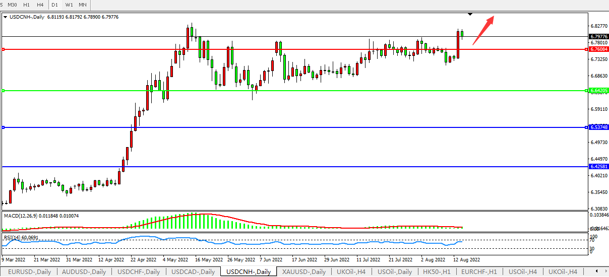 交易策略:在6.6420之上,看涨,目标价位为6.7600、6.8870