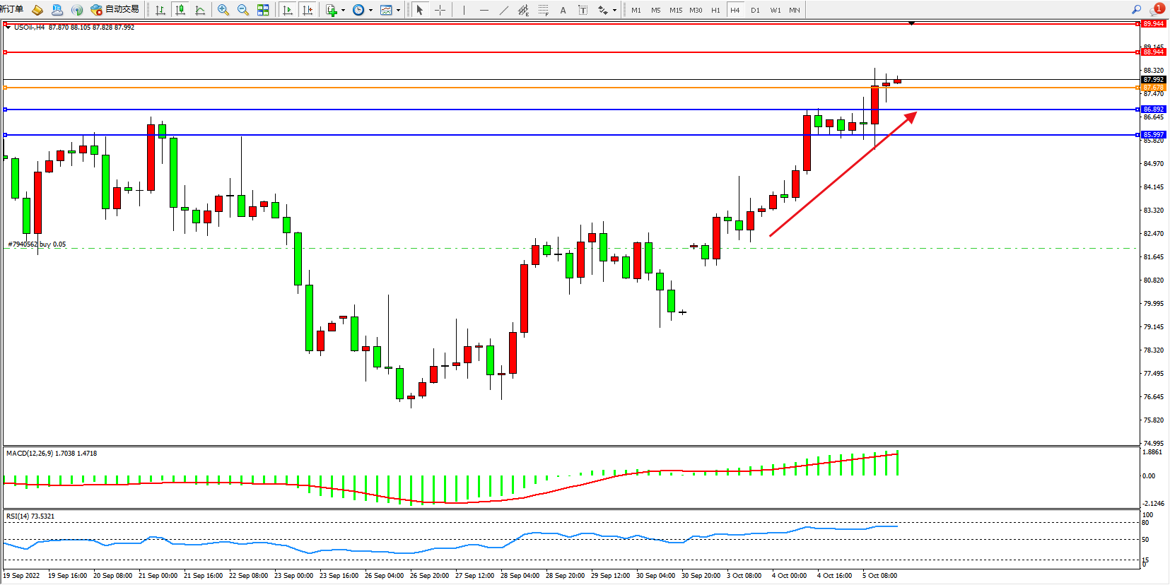 4小时图看:多头动力维持震荡上扬态势良好,短期看涨情绪持续升温,多头有检修攀升态势,MACD指标处于多头区域维持平缓上行,RSI处于多头区域维持高位徘徊;