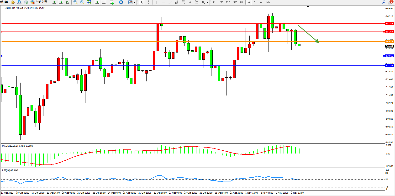 布油UKOil——4小时K线图显示: