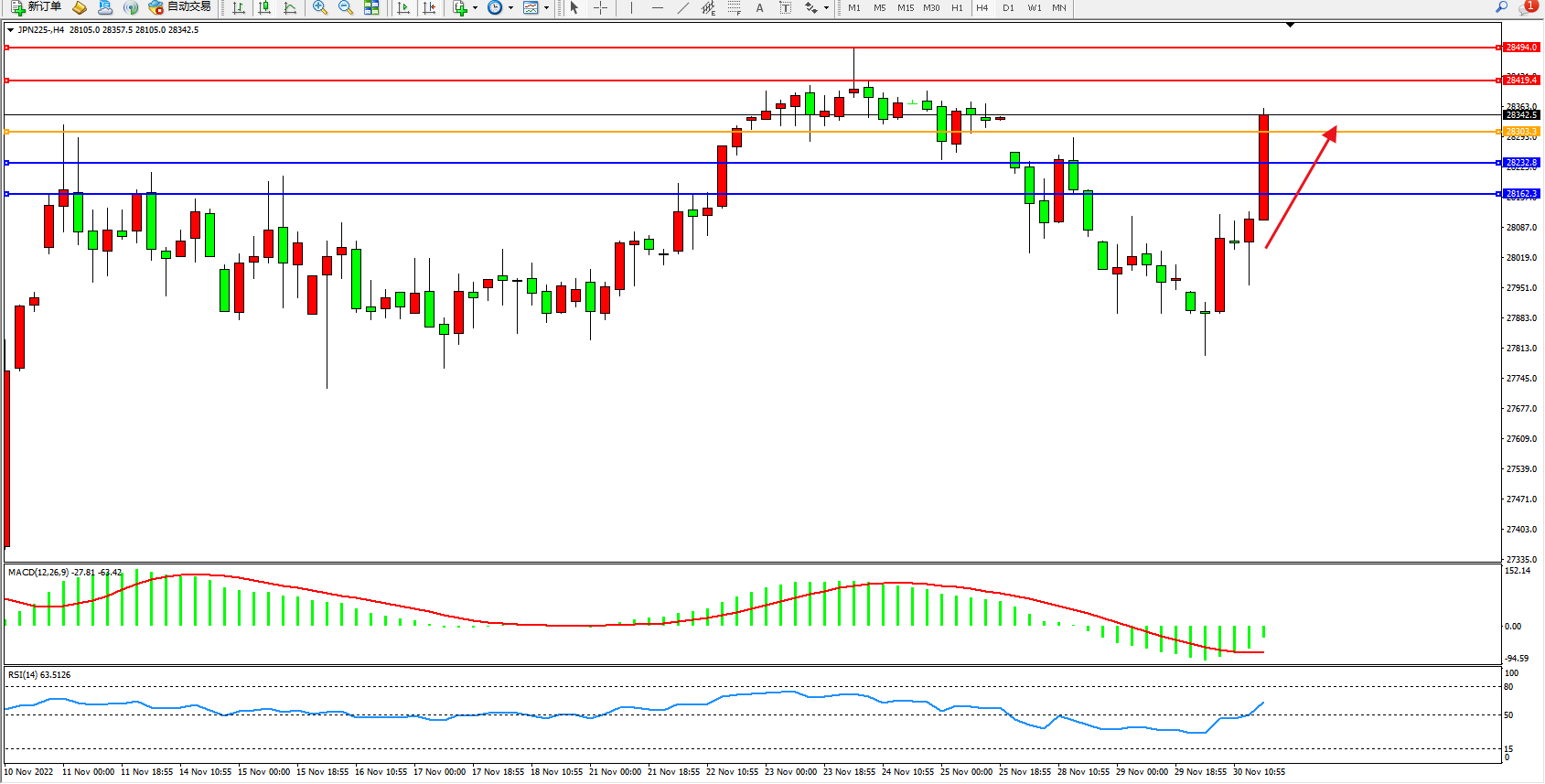 日经225指数11月30日(周三)收盘下跌58.84点,跌幅0.21%,报27969.00点。日本10月新屋开工年率 -1.8%,预期-1.3%,前值1.00%。