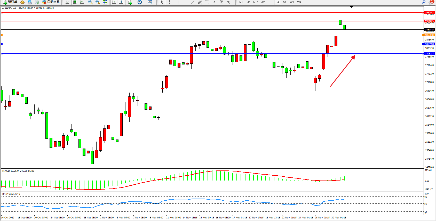 恒指HK50 4小时图