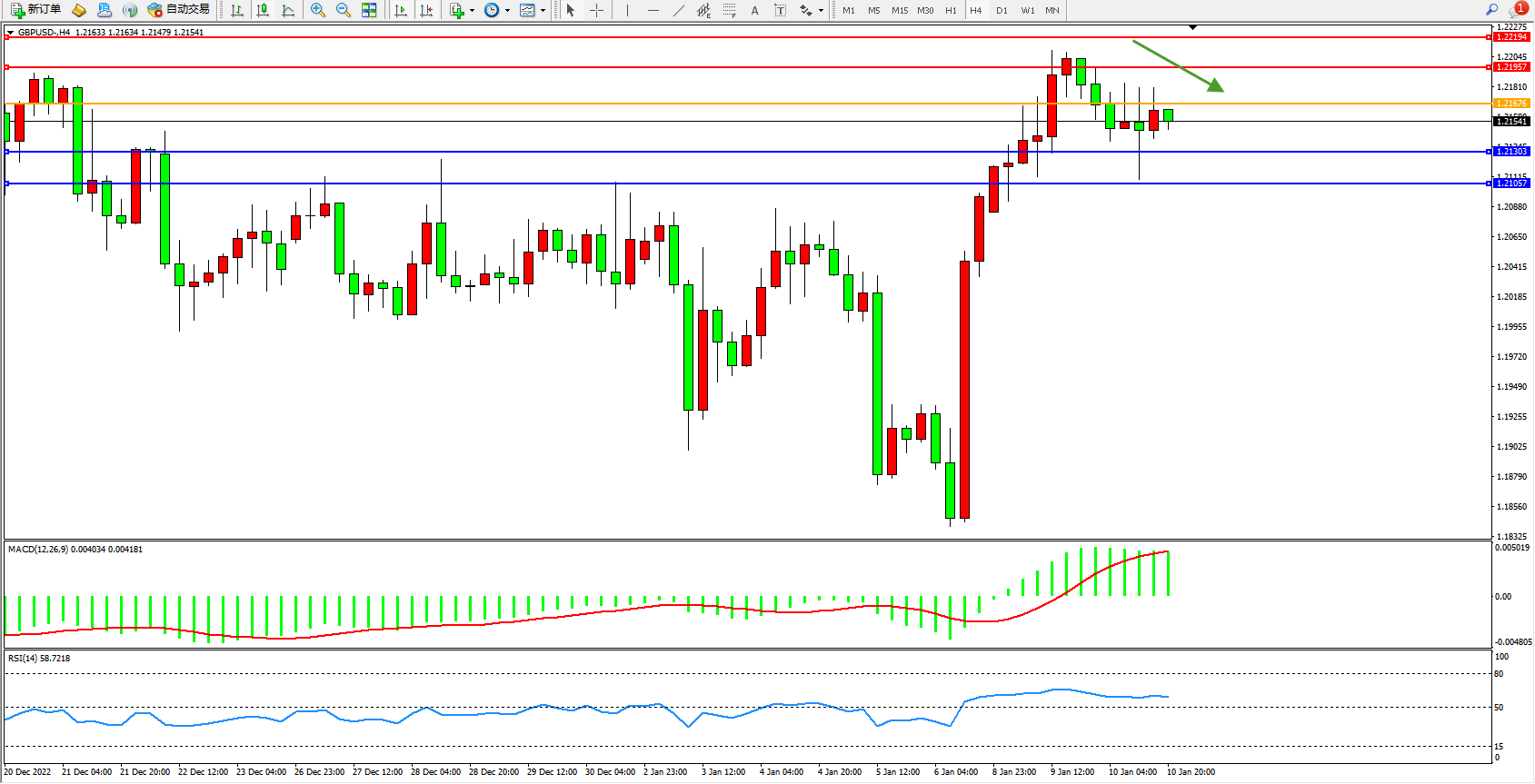 备选策略:1.21676上方看涨,目标1.21957、1.22194