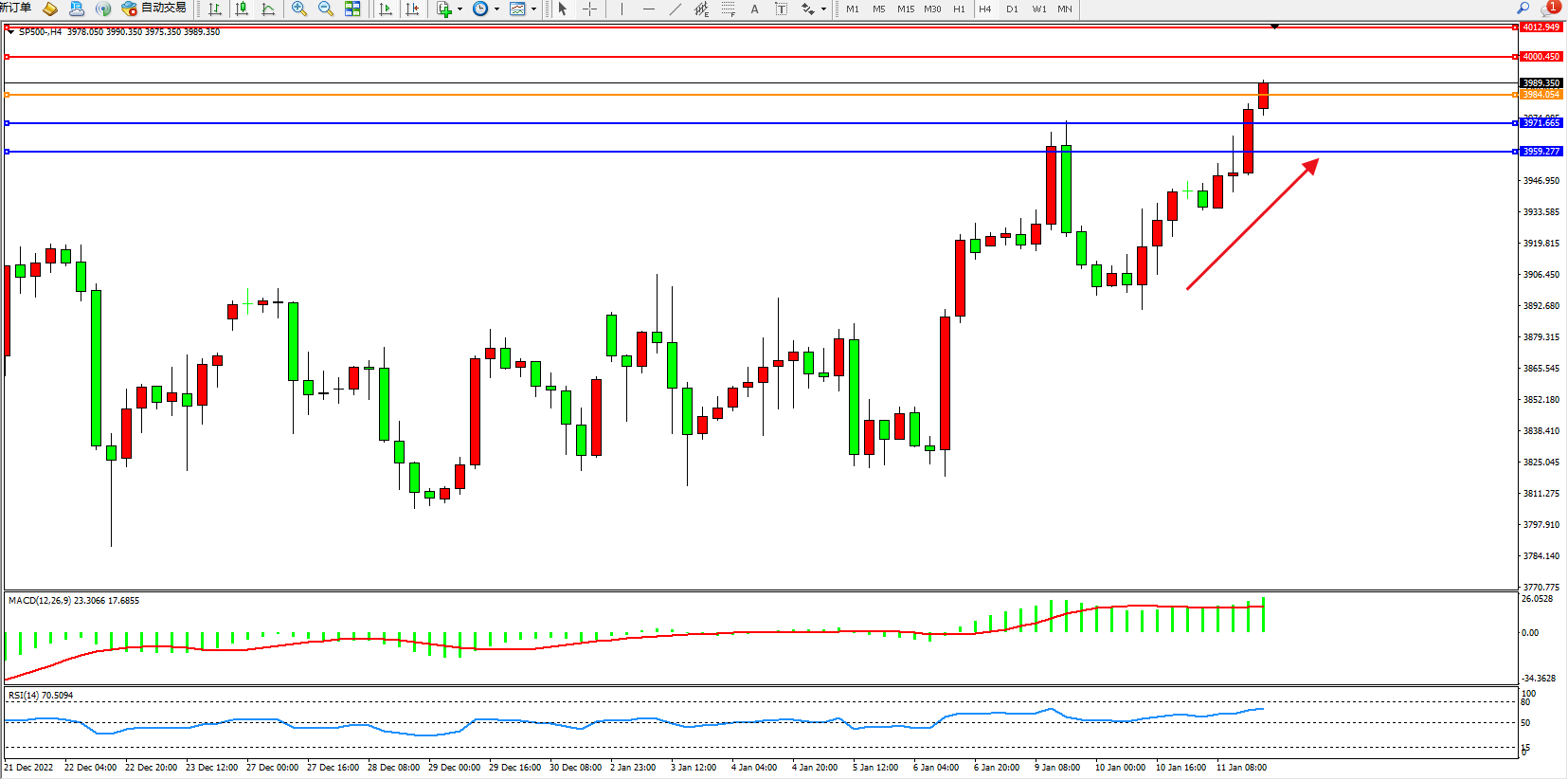 标普SP500——4小时K线图显示: