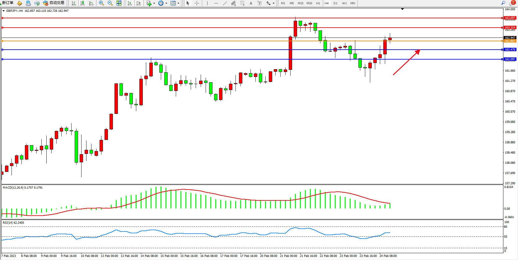 备选策略:162.807下方看跌,目标162.470、162.097