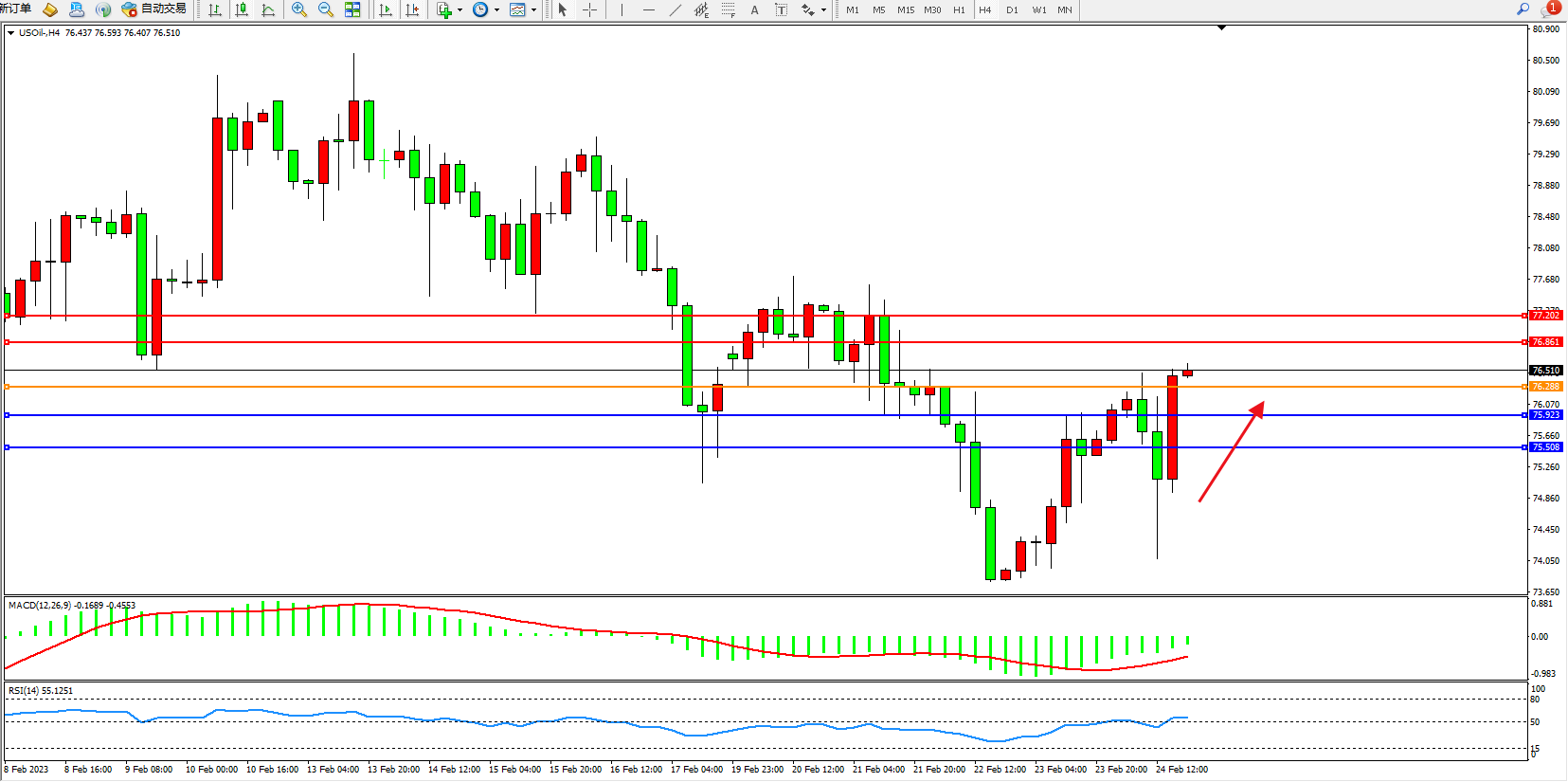 原油维持76.510附近震荡,俄罗斯计划在3月份将其西部港口的石油出口规模削减至多25%,超过其此前宣布的50万桶/日减产幅度。