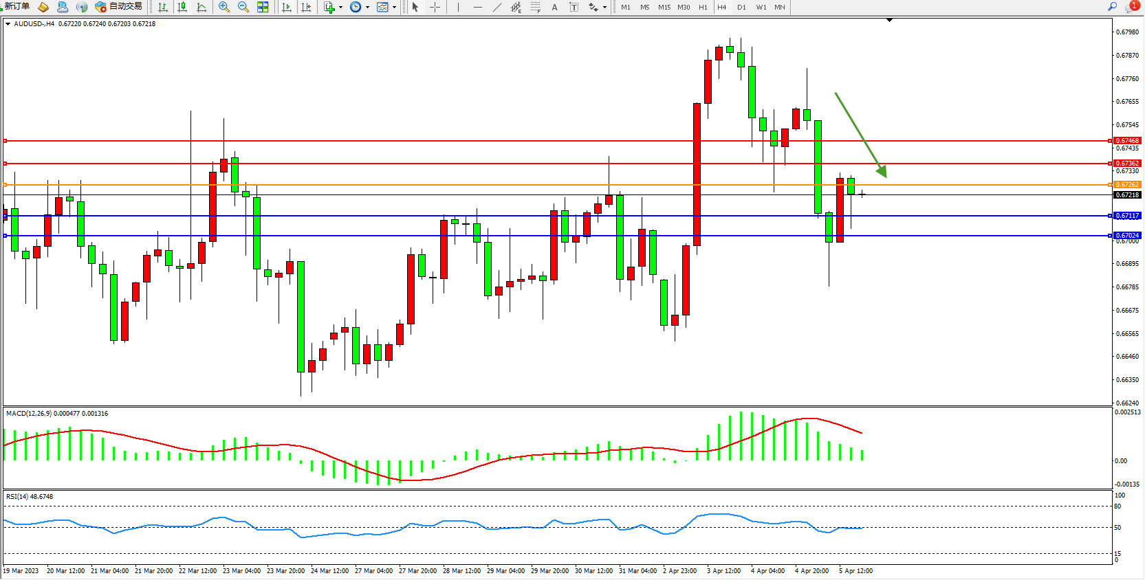 交易策略:0.67262下方看跌,目标0.67117  0.67024