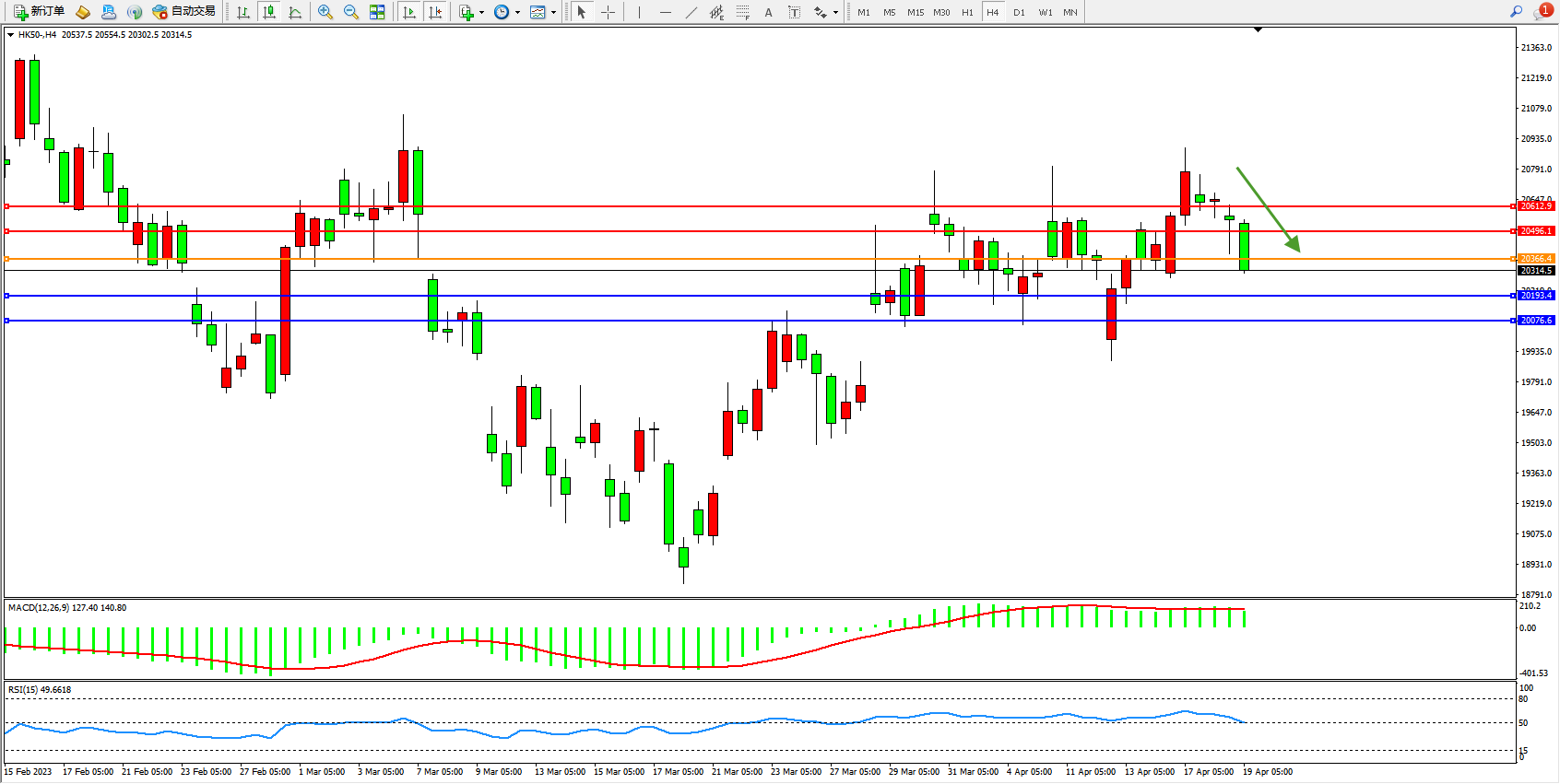 恒指HK50 4小时图