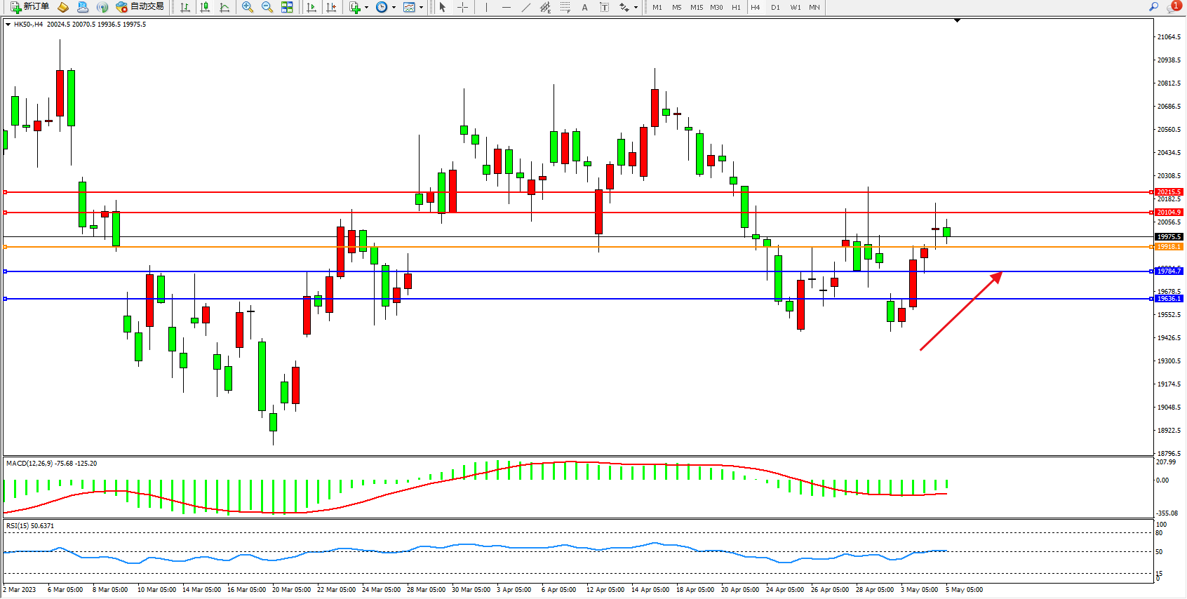 恒指HK50 4小时图