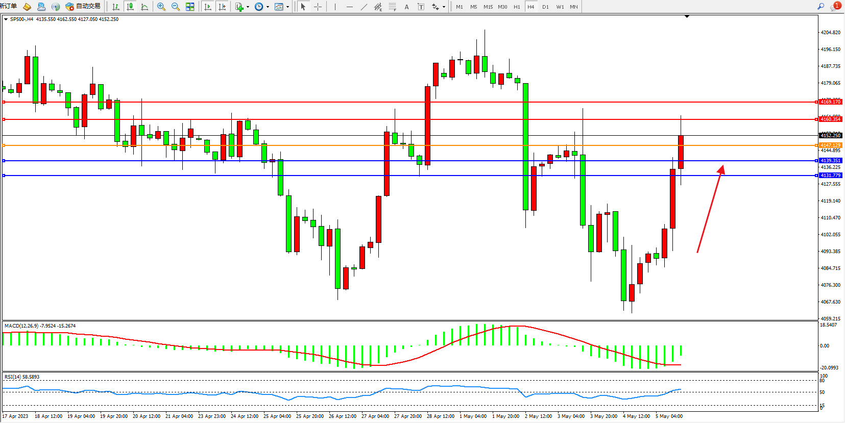 标普SP500——4小时K线图显示: