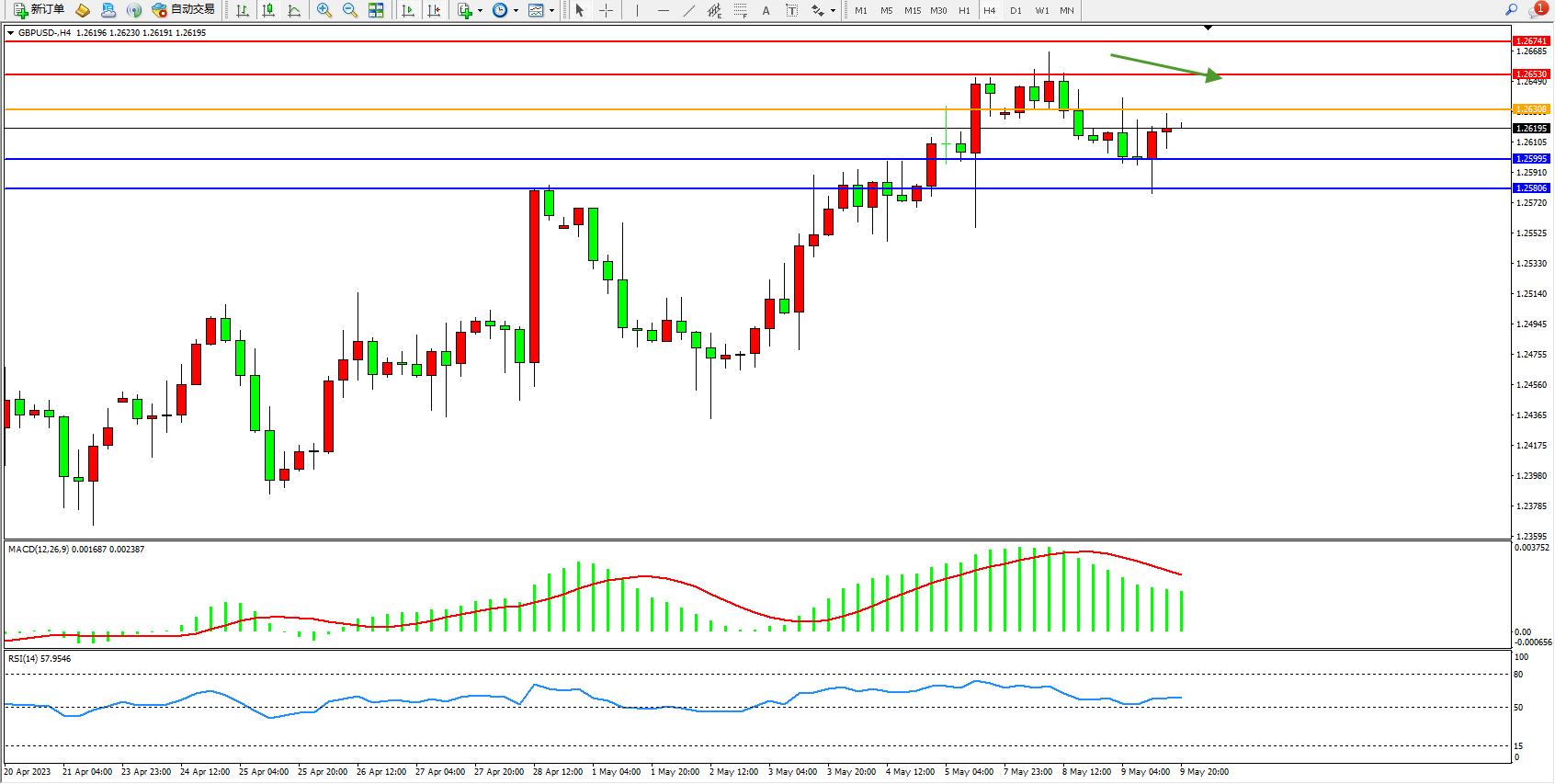 备选策略:1.26308上方看涨,目标1.26530 1.26741