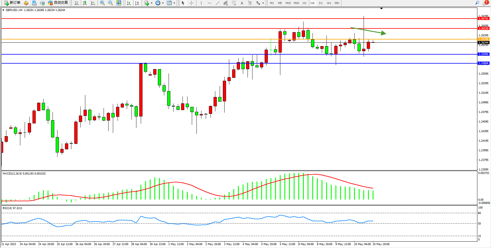 备选策略:1.26308上方看涨,目标1.26530 1.26741