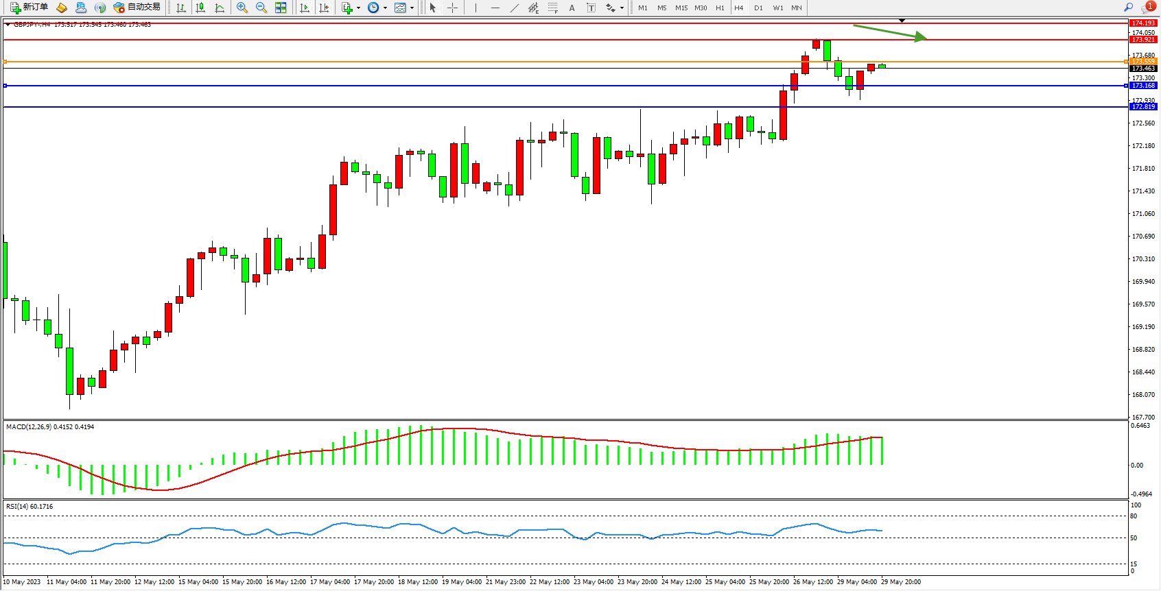 阻力位:173.921  174.193