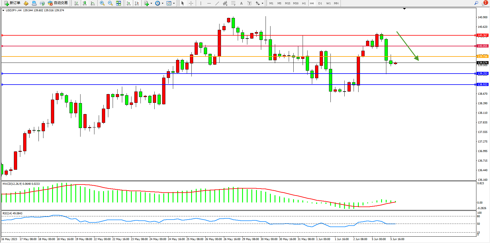 交易策略:139.756下方看跌,目标139.253  138.933