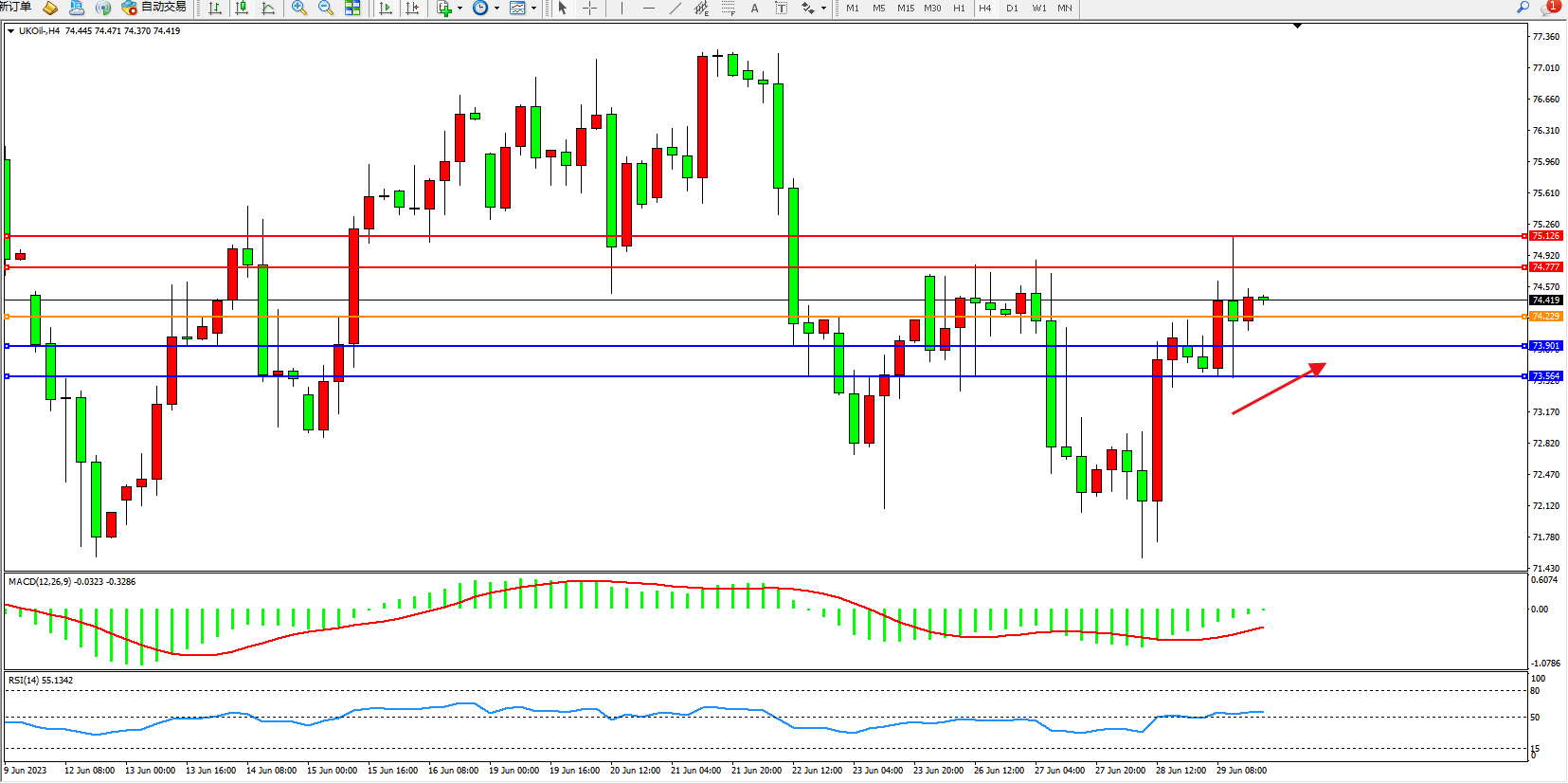 布油UKOil——4小时K线图显示: