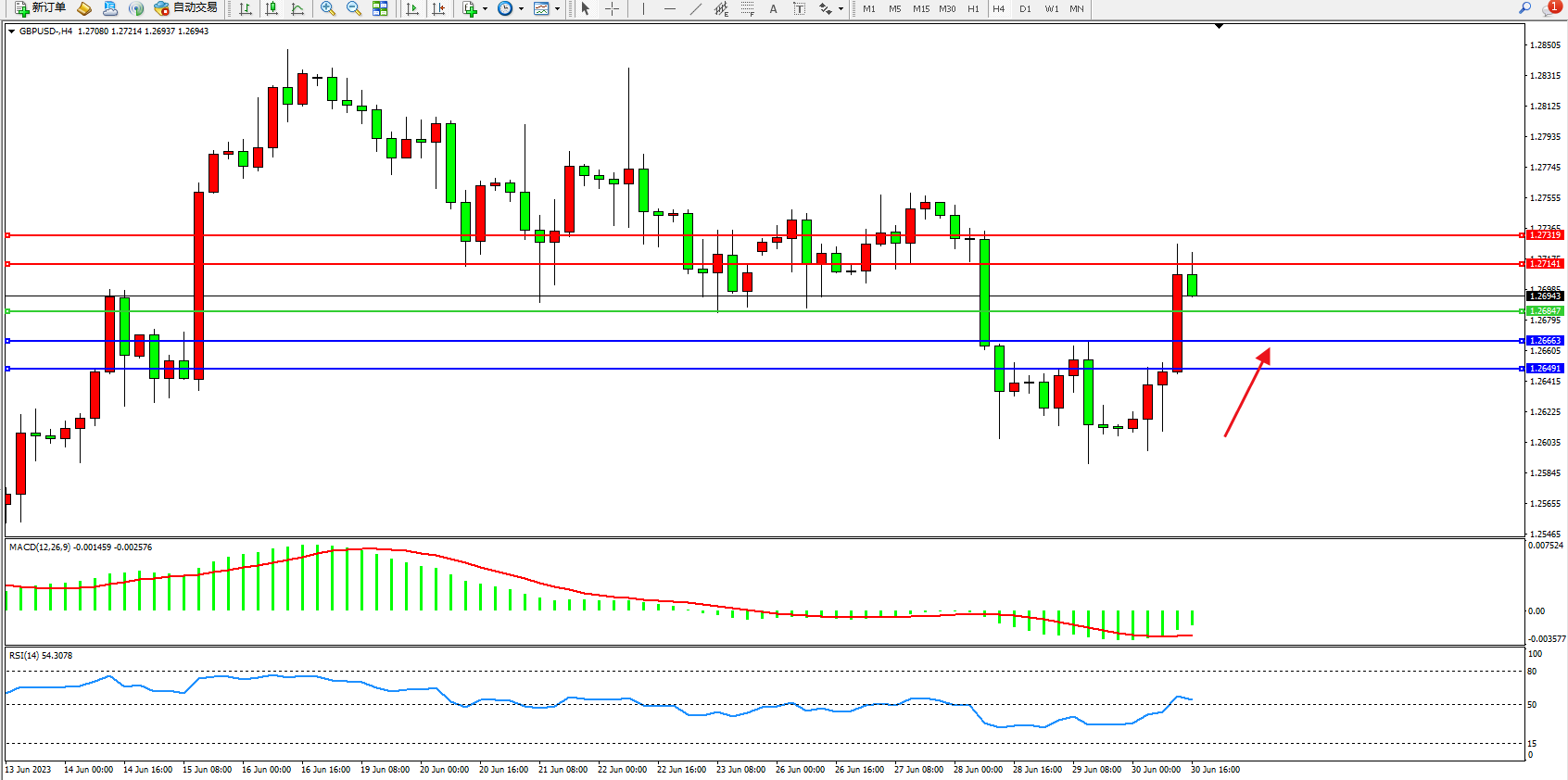 交易策略:1.26847上方看涨,目标1.27141 1.27319