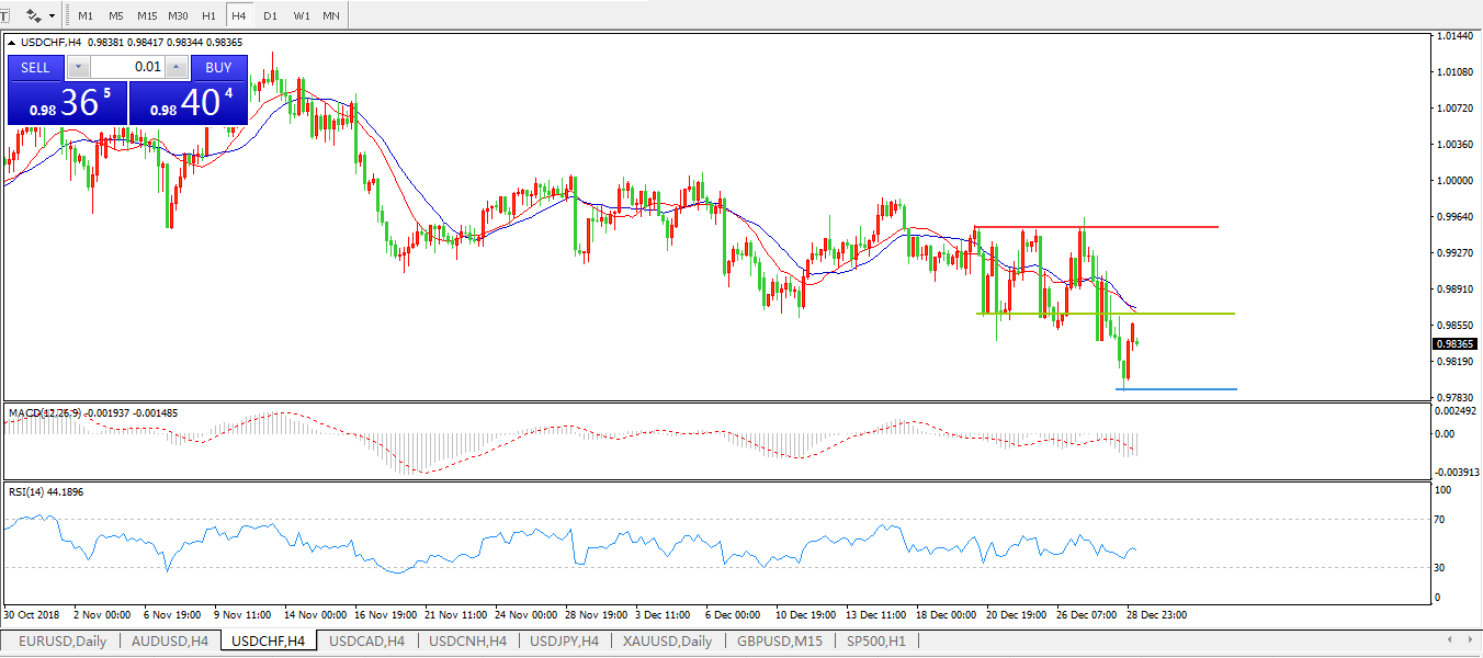 美元兑瑞郎USDCHF4小时图:
