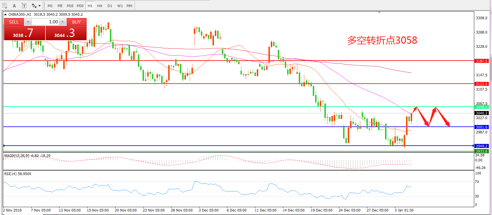 多空转折点:3058.00