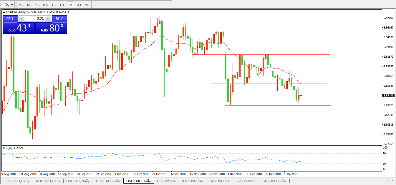 交易策略6.8715下,看跌,目标价位为6.8417,然后为 6.8242