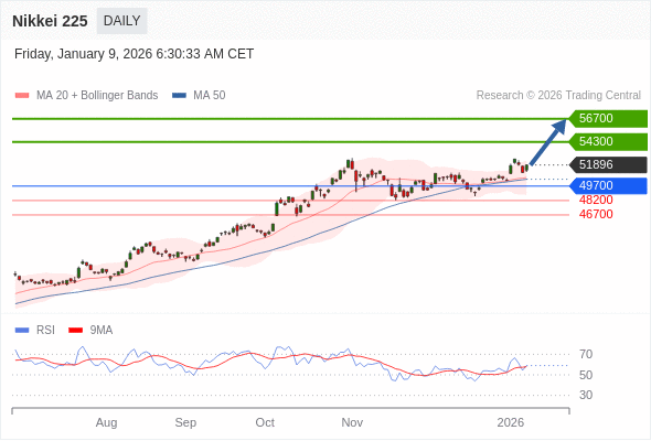 Nikkei 225 短线: 在49700之上,看涨。