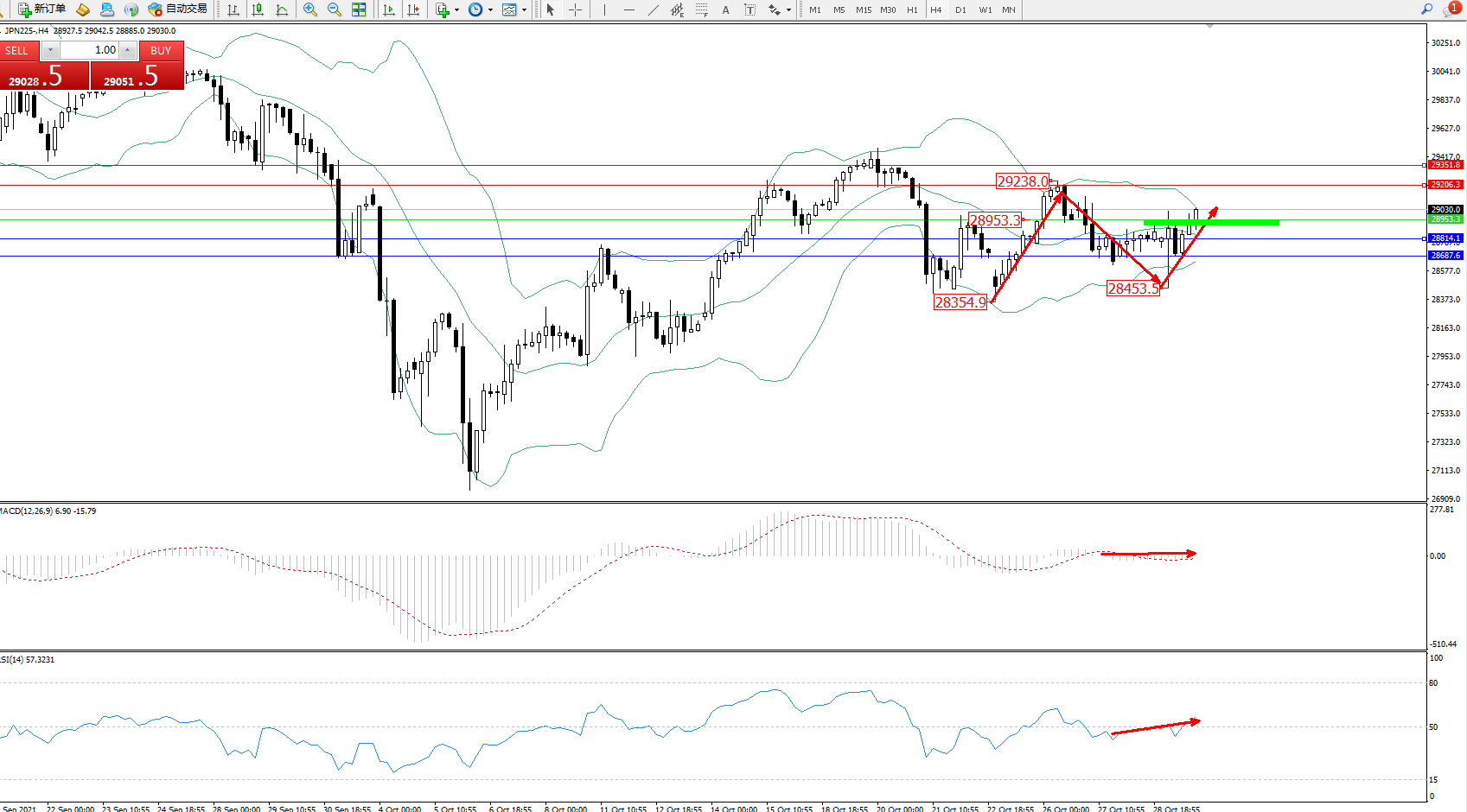 交易策略:28953上方看涨,目标29206、29351