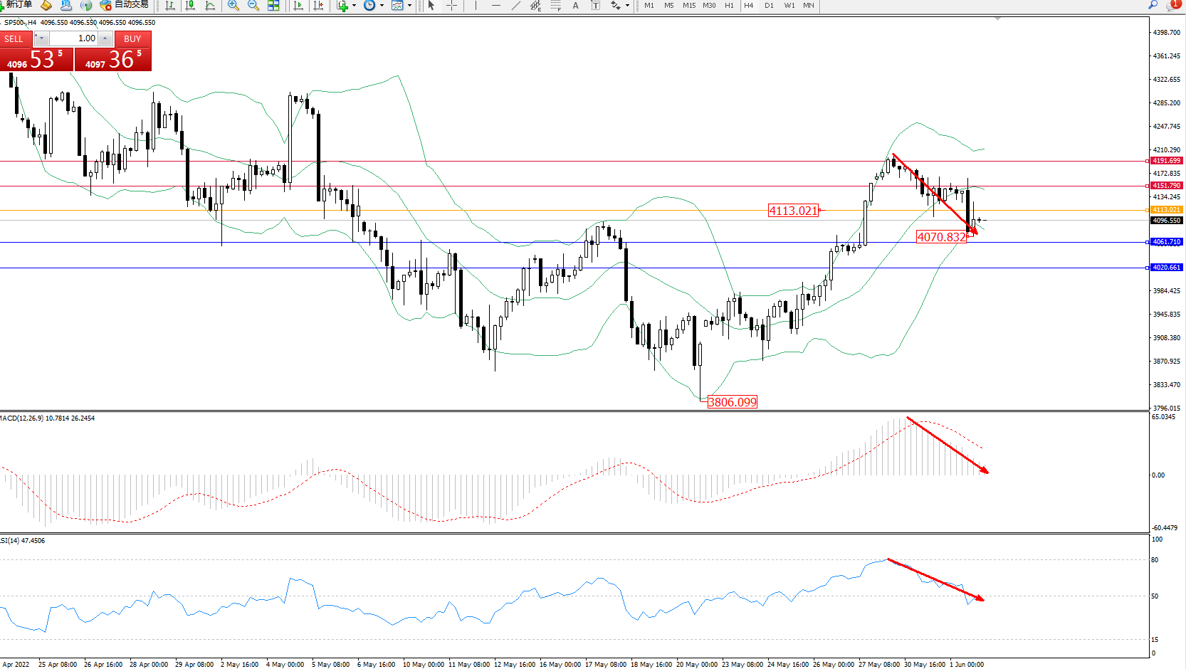 标普500指数6月1日(周三)收盘下跌30.96点,跌幅0.75%,报4101.19点;美股收盘,三大股指高开低走,标普持续走低。美联储最鹰派官员:当前目标是加息,2019年的利率水平或可作日后参考。