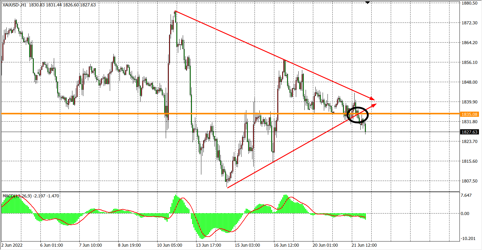 现货黄金XAUUSD 1小时图