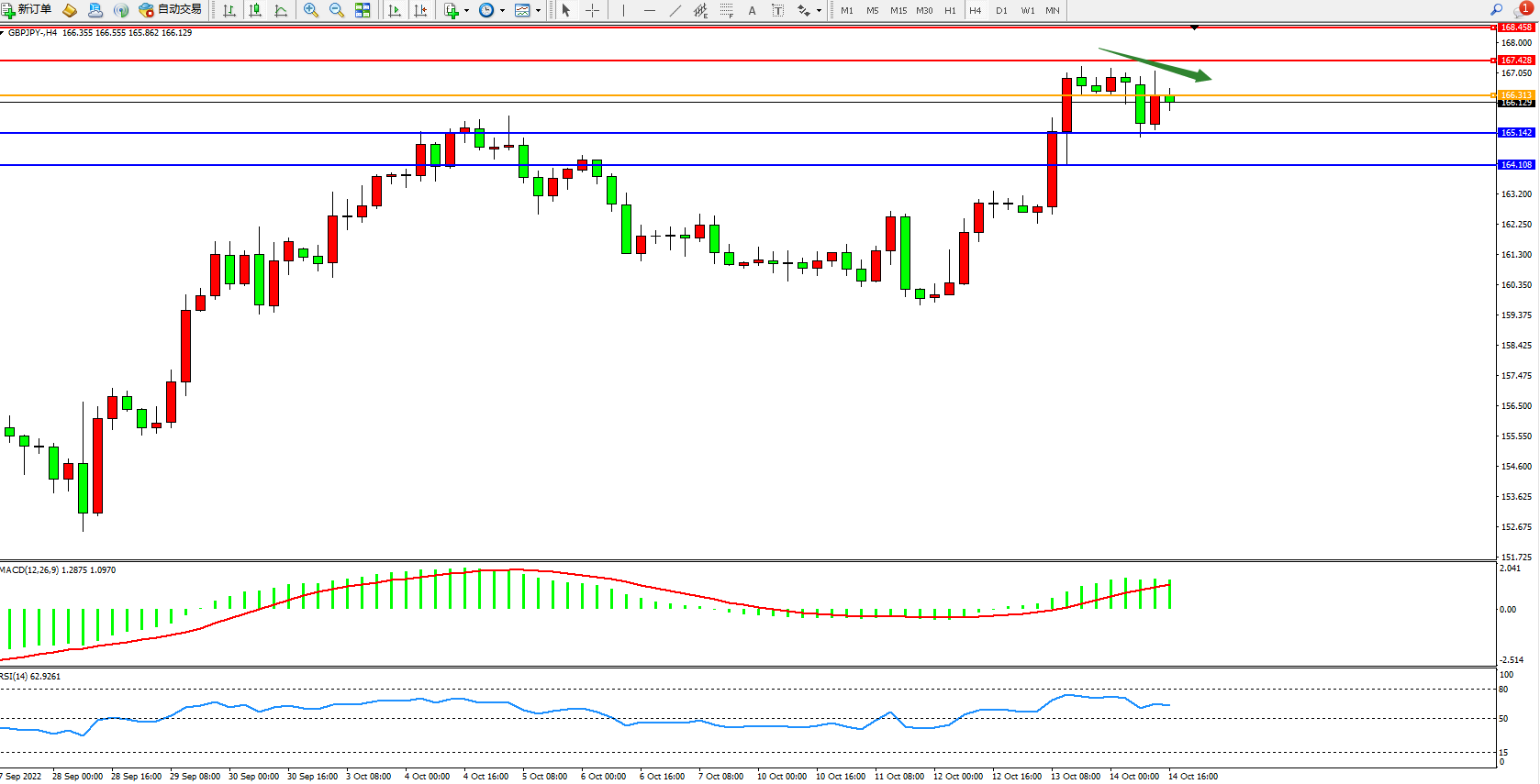 交易策略:166.313下方看跌,目标165.142、164.108