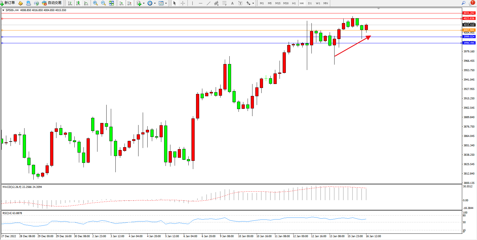 标普SP500——4小时K线图显示: