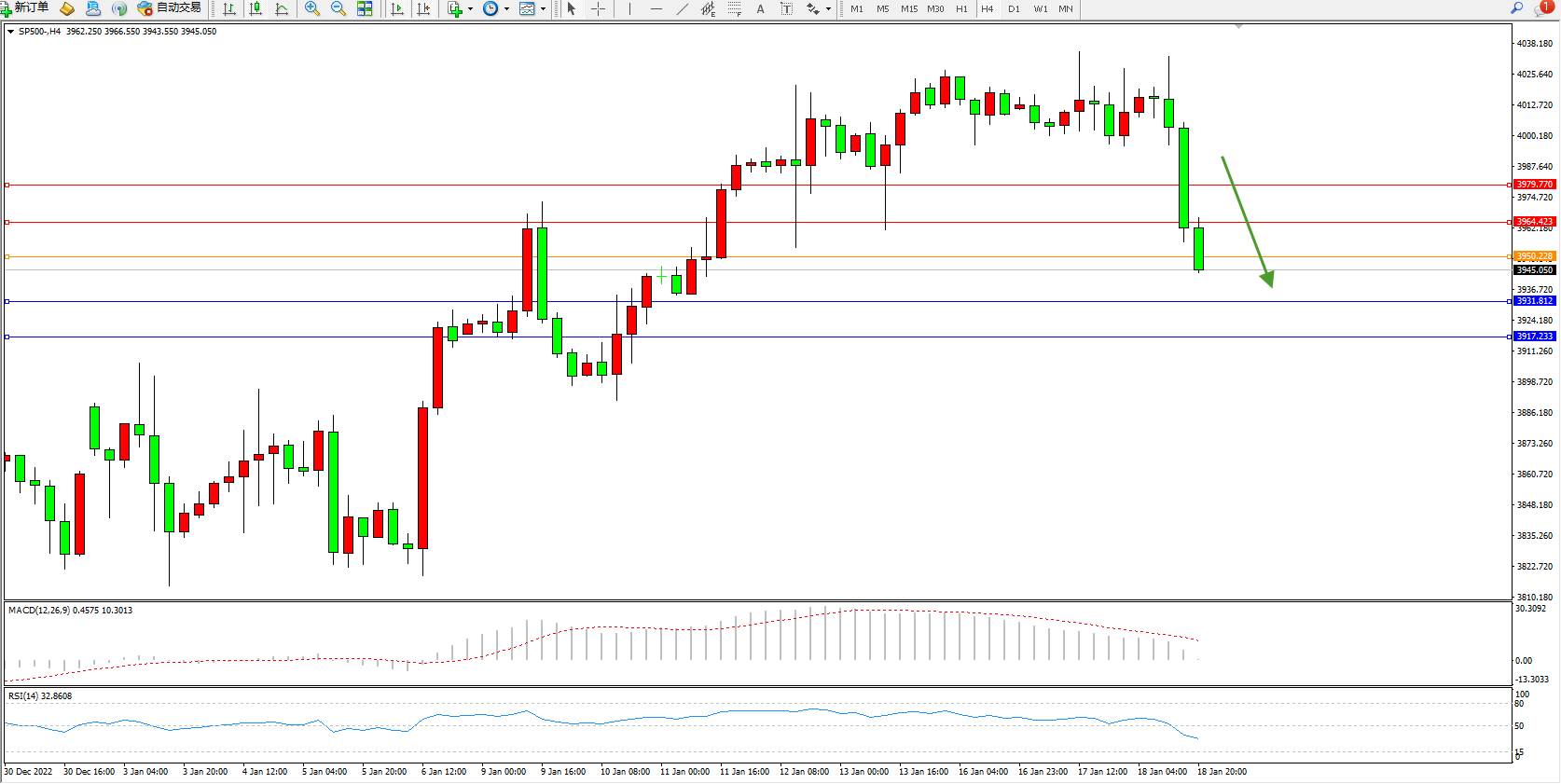 标普SP500——4小时K线图显示: