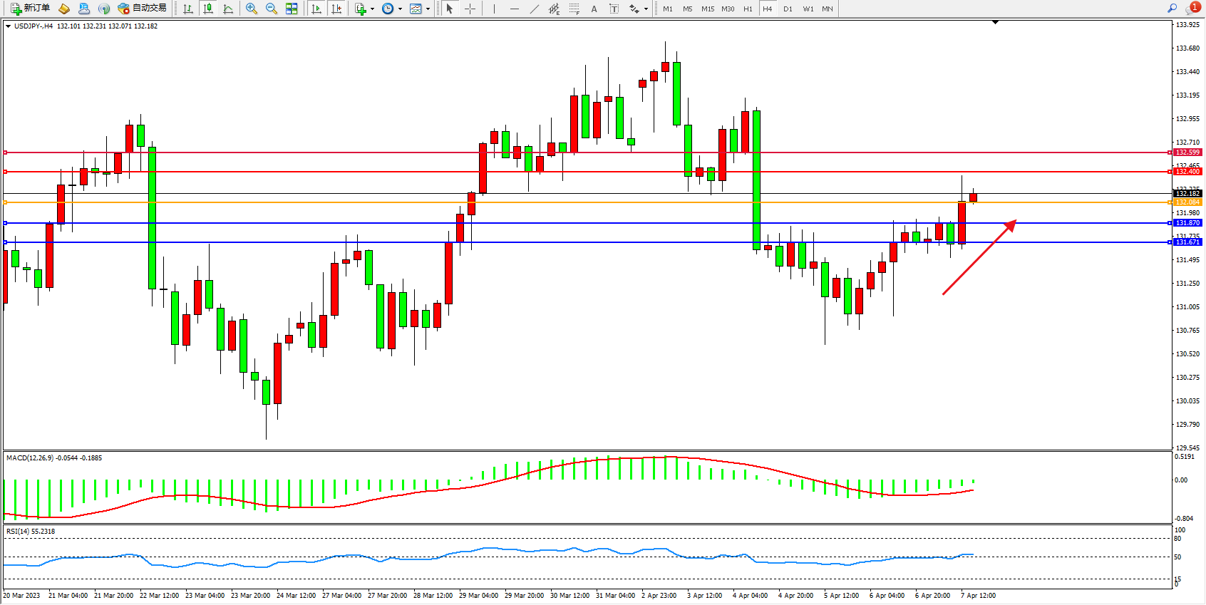 阻力位:132.400 132.599
