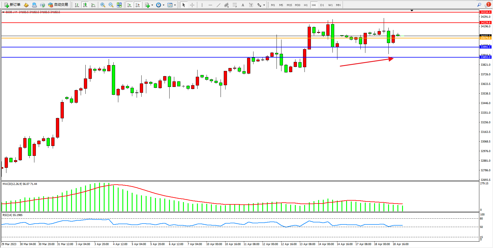 交易策略:34079上方看涨,目标34229  34334